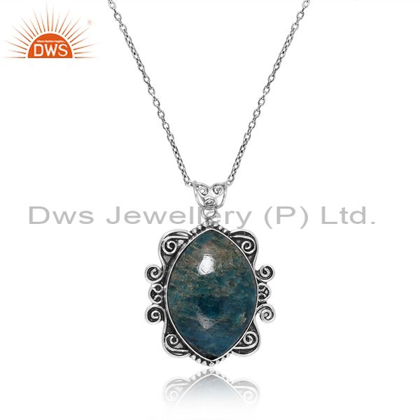 Antique Look Apatite Drop Pendant And Chain For Unisex Gift