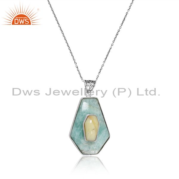 Antique Look Yellow Opal And Amazonite Pendant And The Chain