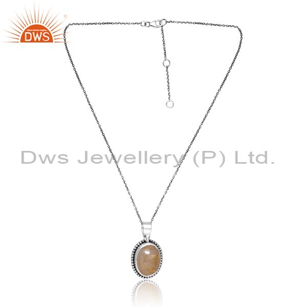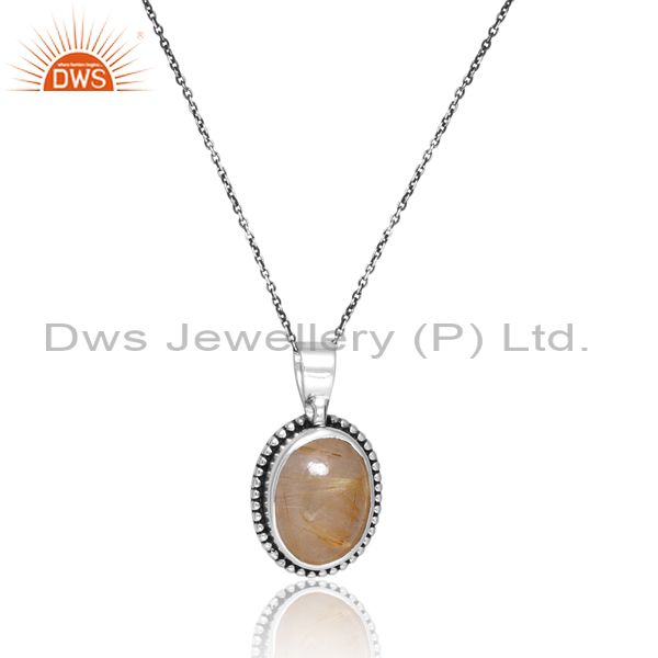 Antique Oval Golden Rutile Stone Pendant With Silver Chain