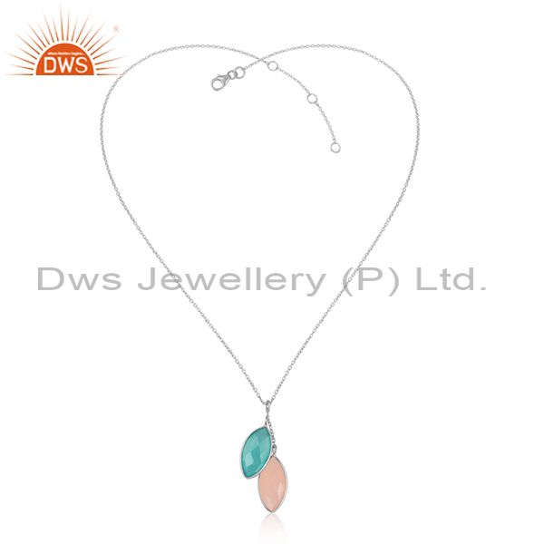 Aqua and Rose Chalcedony Gemstone 925 Sterling Silver Pendants