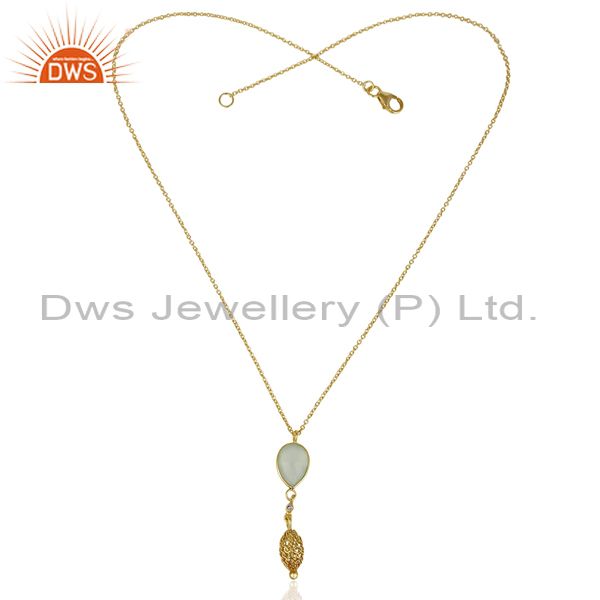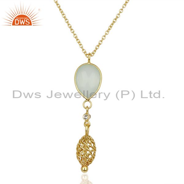 Aqua Chalcedony 14K Gold Plated Filigree 92.5 Sterling Silver Pendent