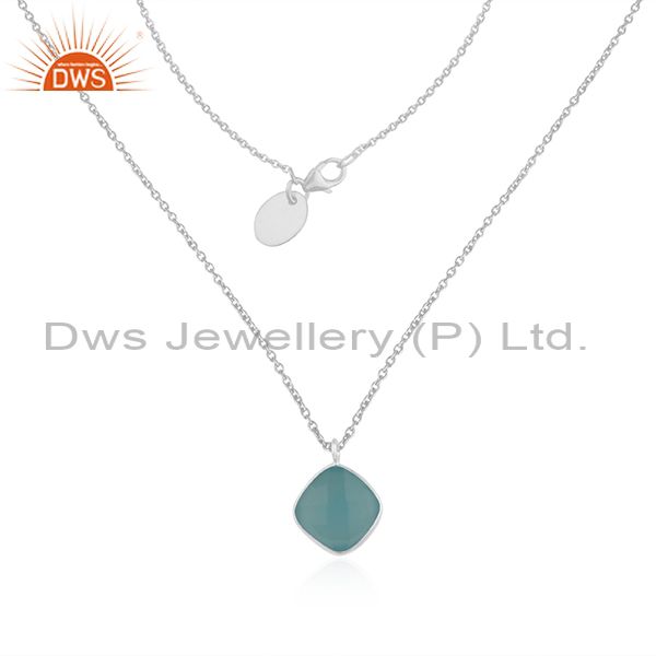 Aqua Chalcedony Gemstone Fine Sterling Silver Chain Pendant Manufacturer