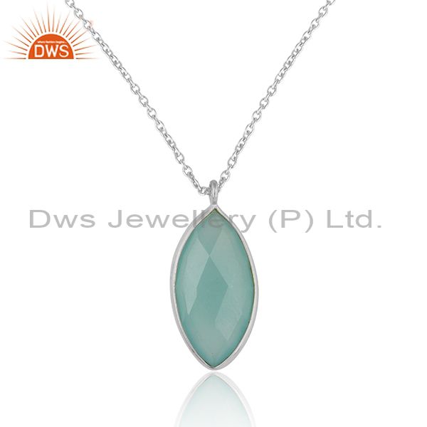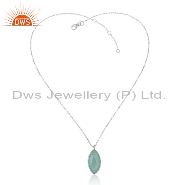 Aqua Chalcedony Gemstone Sterling Fine Silver Designer Chain Pendant