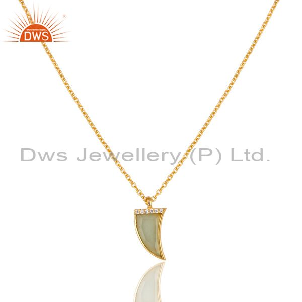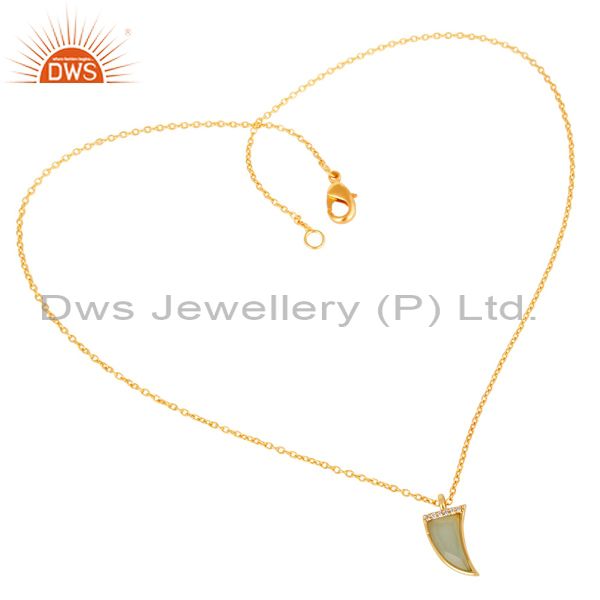 Aqua Chalcedony Horn Cz Studded 14 K Gold Plated Chain 92.5 Silver Pendent
