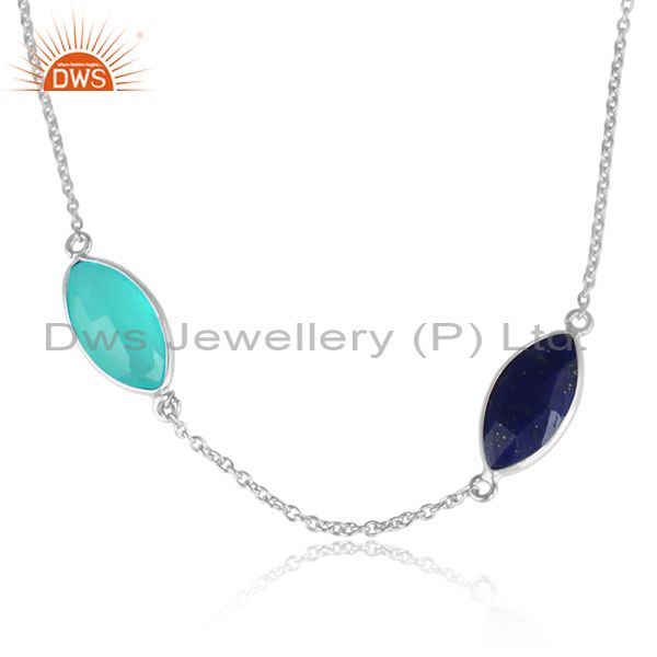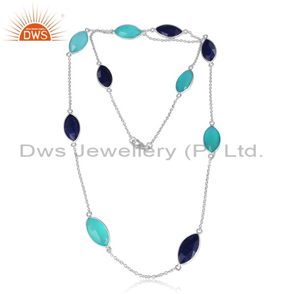 Aqua Chalcedony Lapis Gemstone 925 Fine Sterling Silver Necklaces