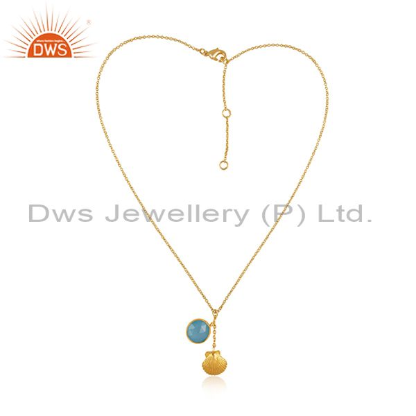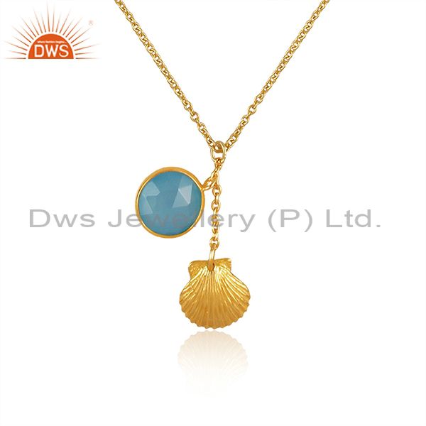 Aqua Chalcedony Set Gold On 925 Silver Pendant And Chain