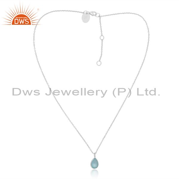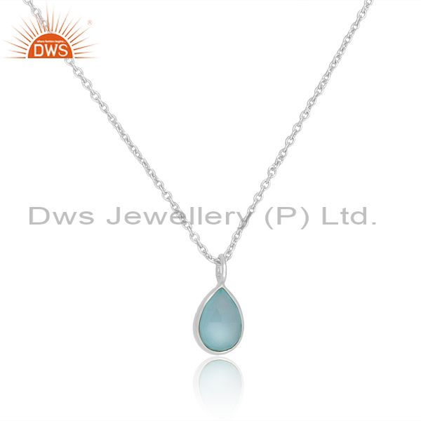 Aqua Chalcedony Set Pendant Fine Sterling Silver Necklace