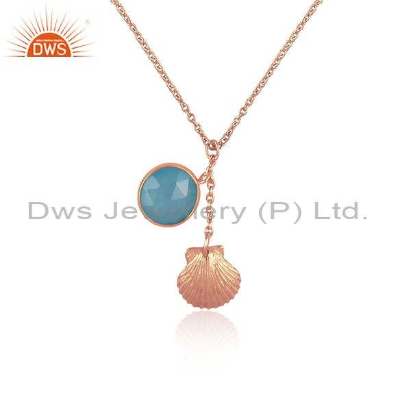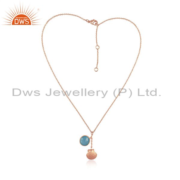 Aqua Chalcedony Set Rose Gold On Silver Pendant And Chain