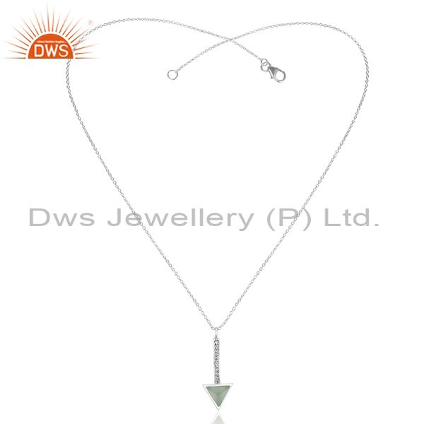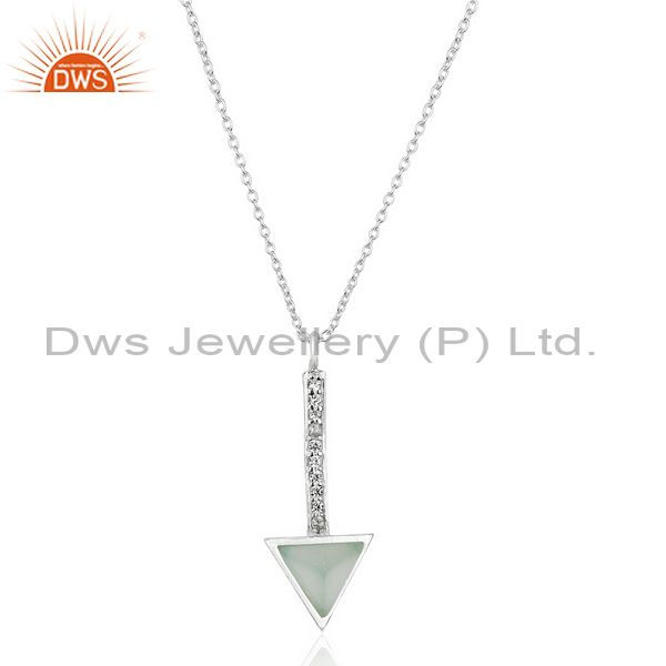 Aqua Chalcedony Triangle Cut 92.5 Sterling Silver Chain Pendent,Long Pendent