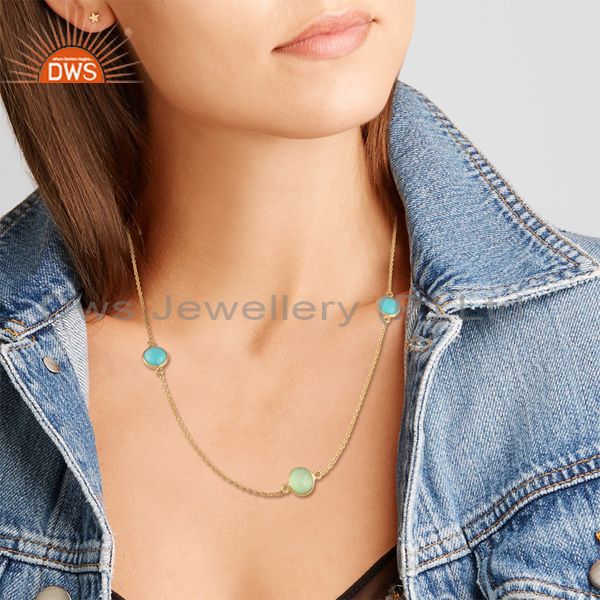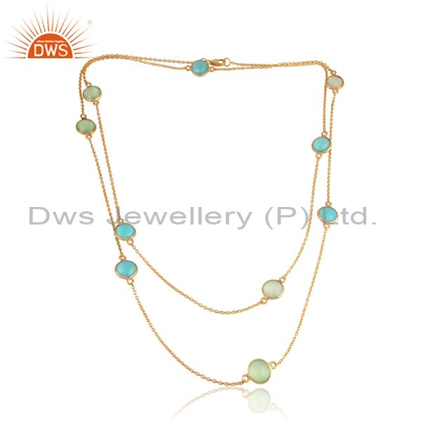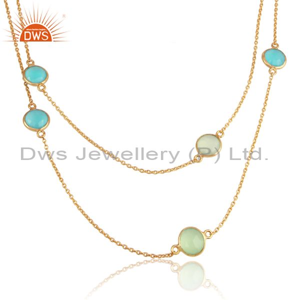 Aqua, Prehnite Chalcedony 18K Gold Plated Silver Chain Necklace