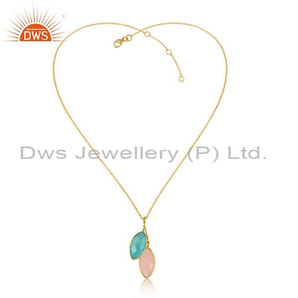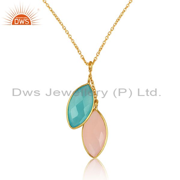 Aqua Rose Chalcedony Gemstone Womens Gold Plated Silver Pendants