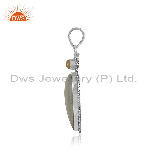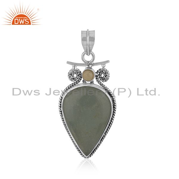 Aquamarine and Citrine Gemstone Oxidized Silver Pendant Jewelry