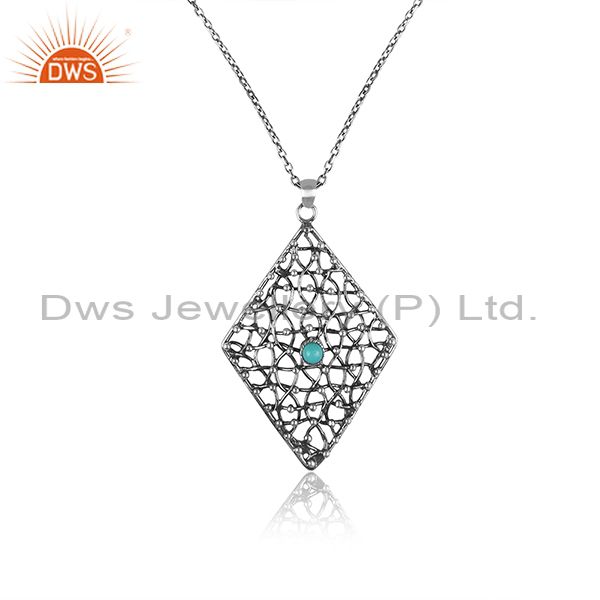 Arizona Turquoise Set Oxidized Silver Spun Pendant And Chain
