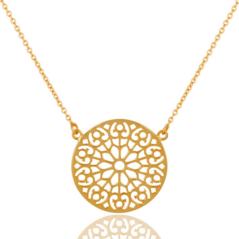 Art Deco Designer Pendant Necklace 18K Gold Plated Over Sterling Silver