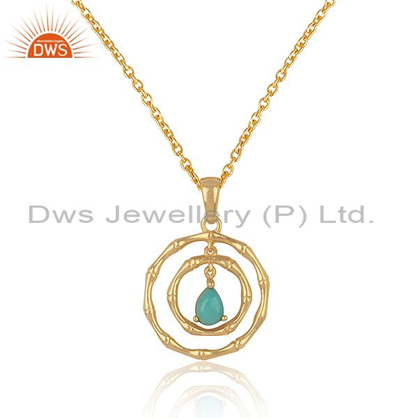 Bamboo Textured Designer Gold on Silver Arizona Turquoise Necklace
