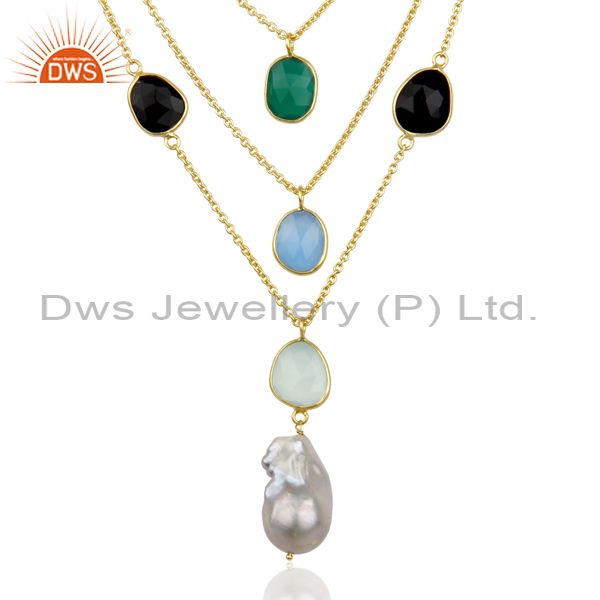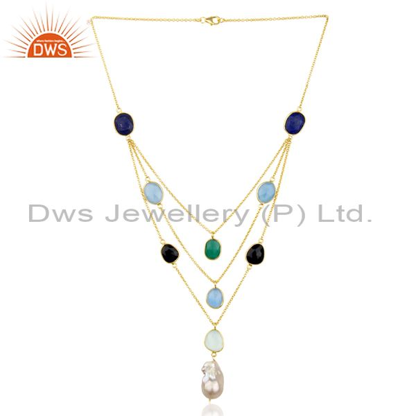 Baroque Pearl Natural Multi Gemstones 14K Gold Plated Gemstone Multi Strand