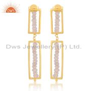 Beaded Rainbow Moonstone Frame Design Gold Plated Silver Necklace