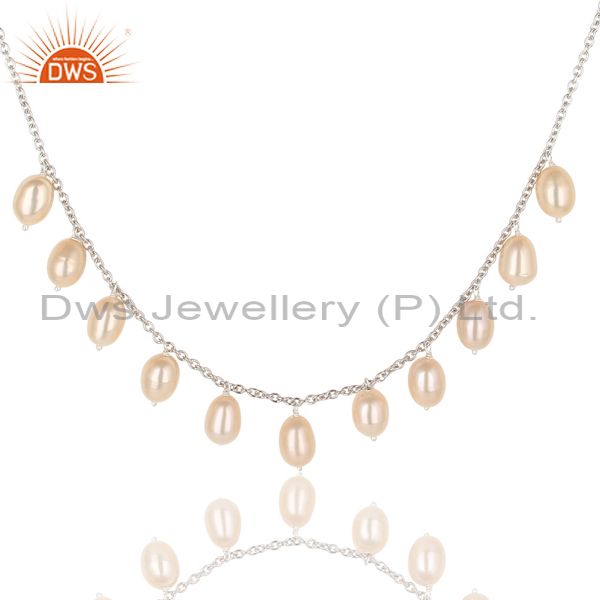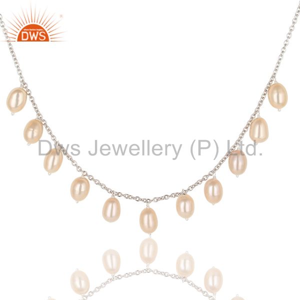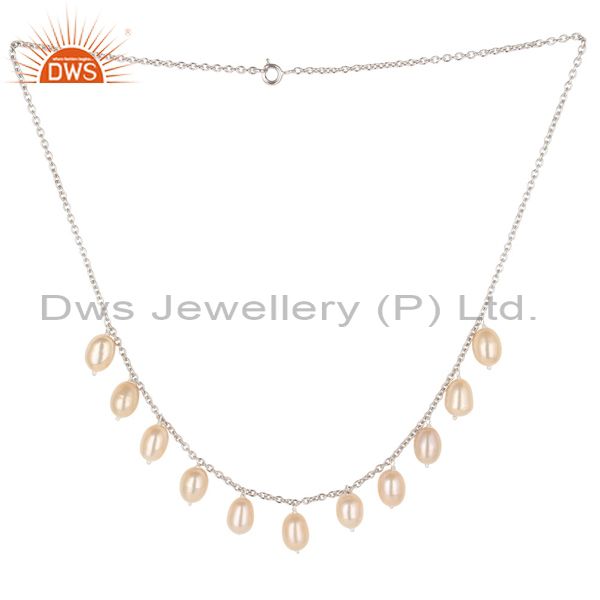 Beautiful 925 Sterling Silver Handmade Beads Pink Pearl Chain Necklace Jewelry