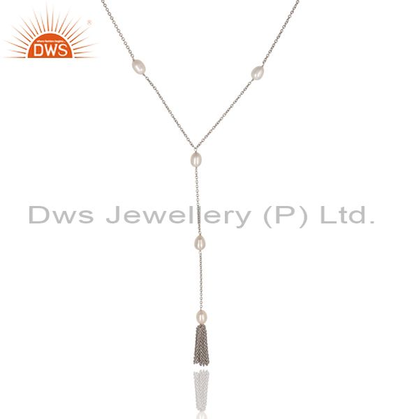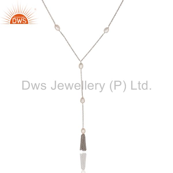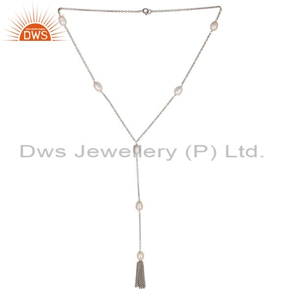 Beautiful Handmade 16 Inch Pearl Drop Chain Necklace Made In 925 Sterling Silver