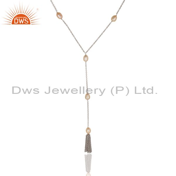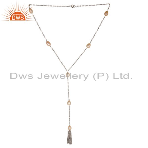 Beautiful Handmade 16 Inch Pink Pearl Chain Necklace Made In 925 Sterling Silver