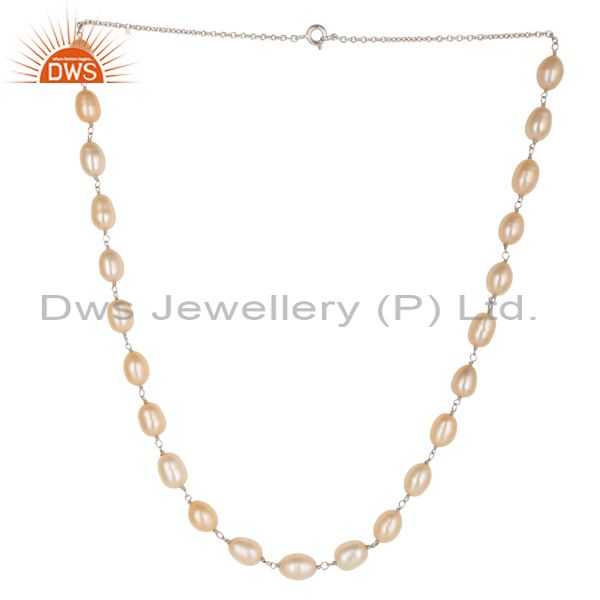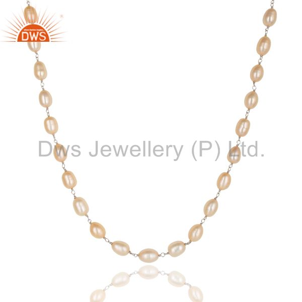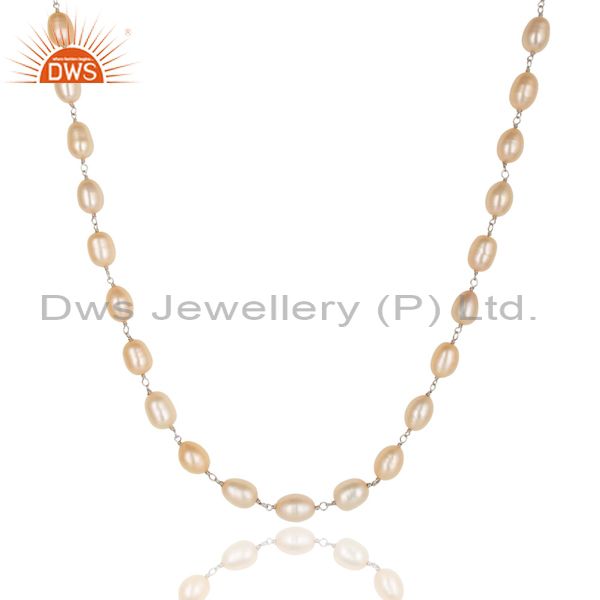 Beautiful Handmade 925 Sterling Silver Beads Pink Pearl Chain Necklace Jewelry