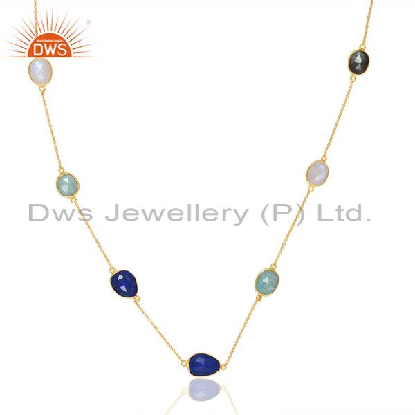 Beautiful Necklace With Amazonite, Labradorite, Lapis