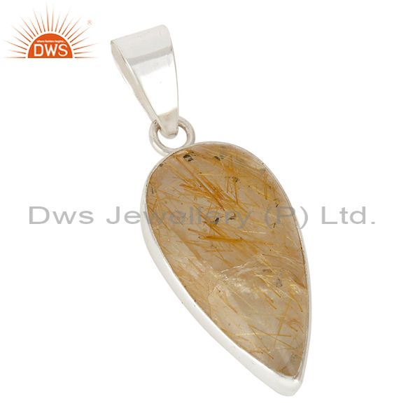 Beautiful Unique Pearl Style Routile Golden Pendant Make In 925 Sterling Silver