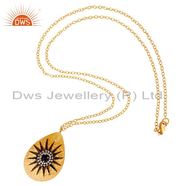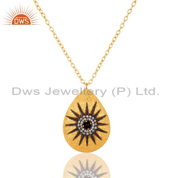 Black Onyx & White Zircon 18K Gold Plated Sun Rise Stylish Brass Chain Pendant