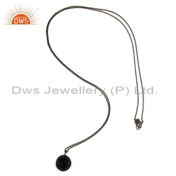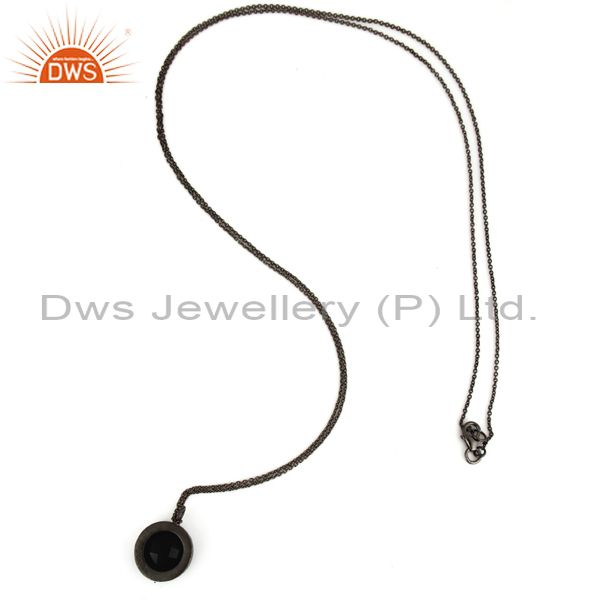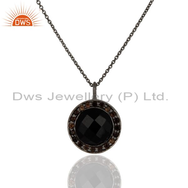Black Onyx And Smoky Quartz Pendant Necklace In Oxidized Sterling Silver