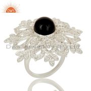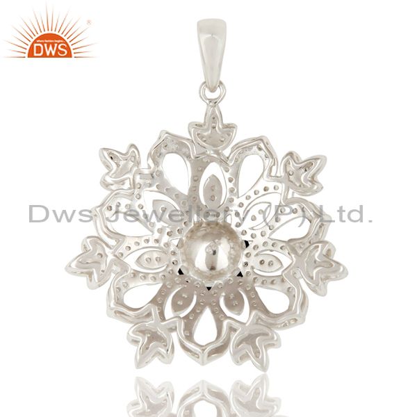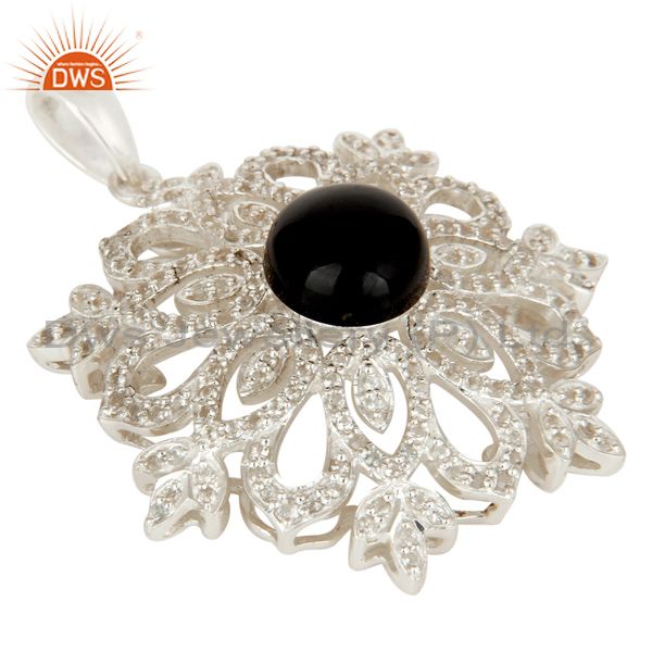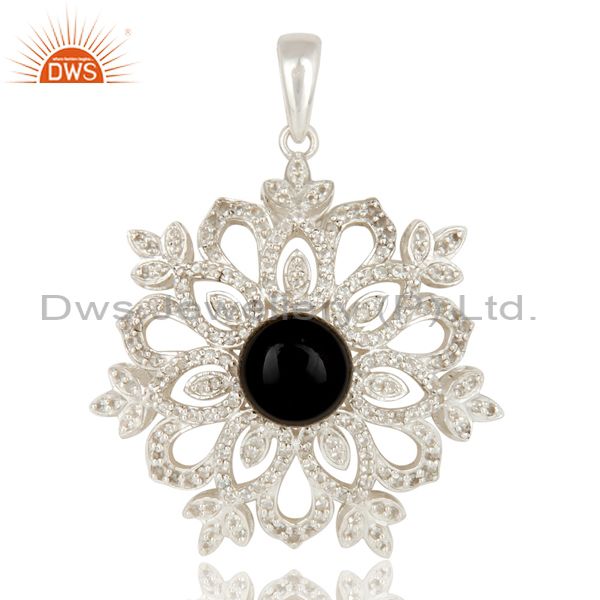 Black Onyx and White Topaz Sterling Silver Designer Flower Pendant Fine Jewelry