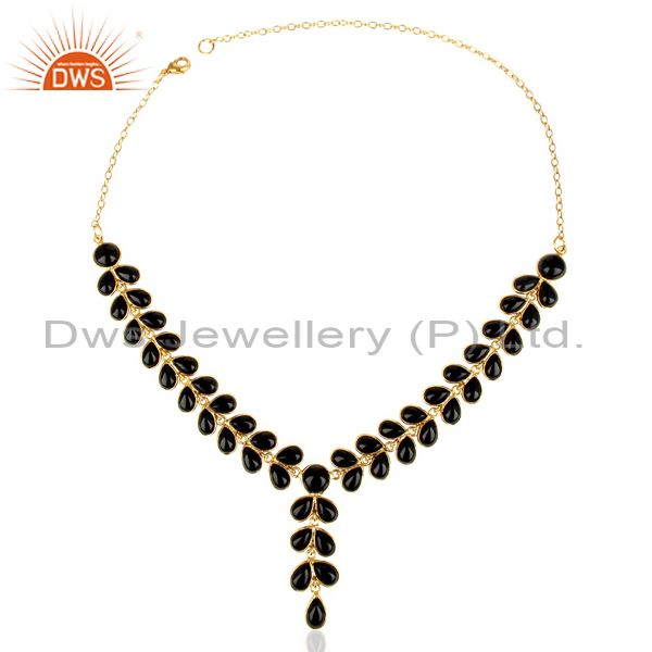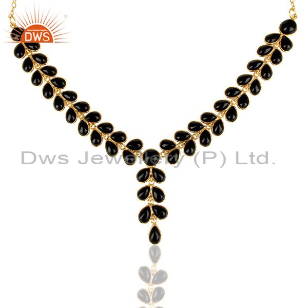 Black Onyx Bezel Set 14K Yellow Gold Plated Chain Necklace Brass Jewelry
