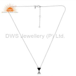 Black Onyx Double Triangle 925 Sterling Silver White Rhodium Plated Pendant
