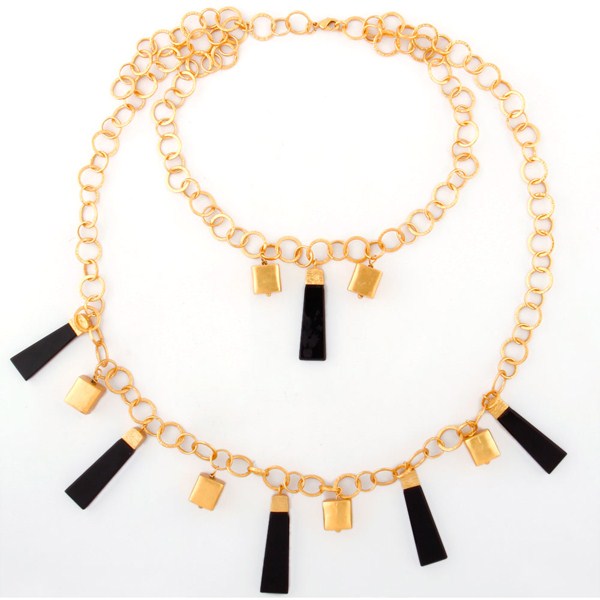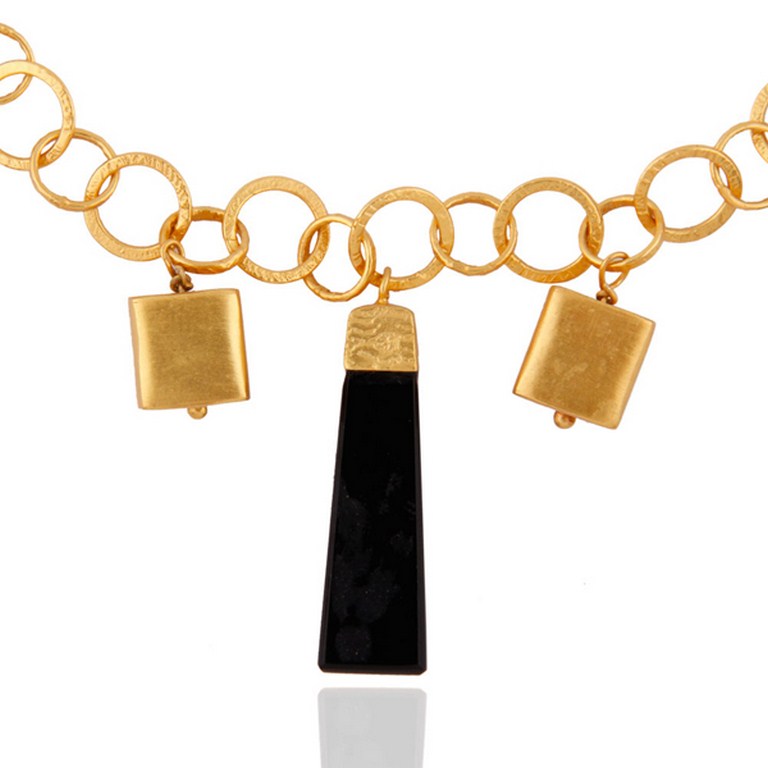 Black Onyx Gemstone Pencil 925 Sterling Silver Handmade Link Necklace With Gold