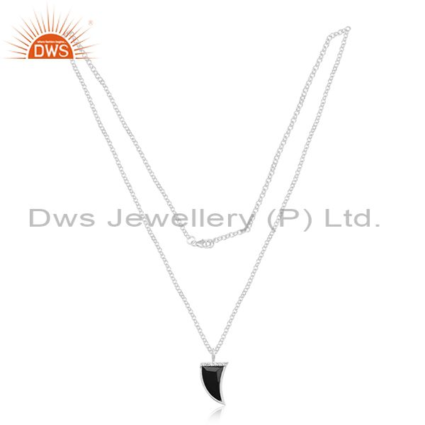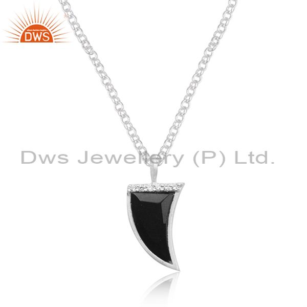 Black Onyx Horn Cz Studded Chain 92.5 Sterling Silver Pendent,Trendy Pendent