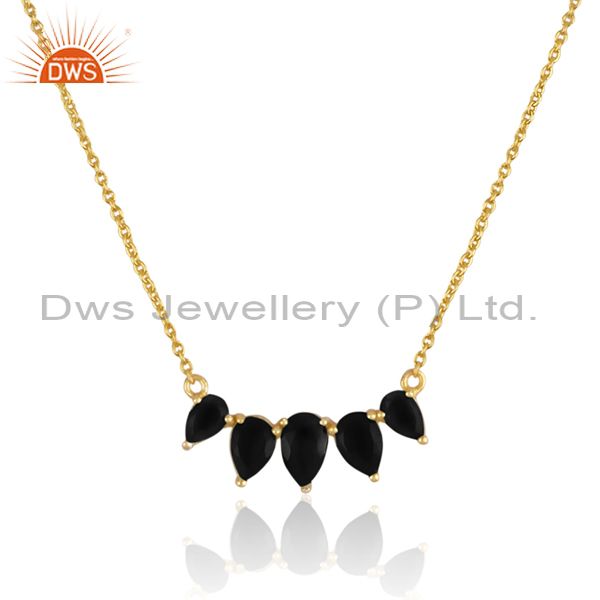 Black Onyx Set Gold On 925 Sterling Silver Pendant And Chain