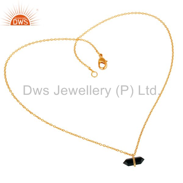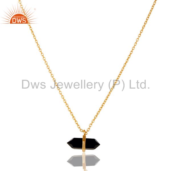 Black Onyx Terminated Pencil Gold Plated Sterling Silver Pendent Jewelry
