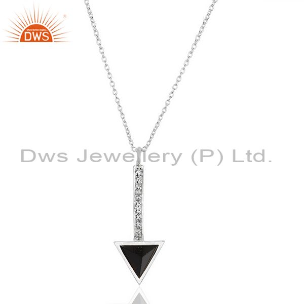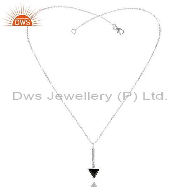 Black Onyx Triangle Cut 92.5 Sterling Silver Chain Pendent,Long Pendent