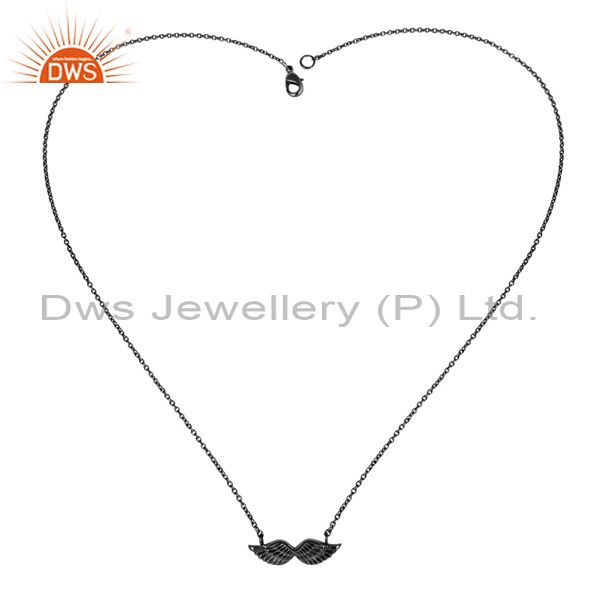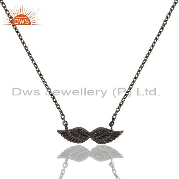 Black Oxidized 925 Sterling Silver Handmade Birds Wings Design Chain Pendant