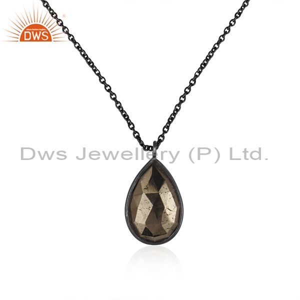 Black Oxidized 925 Sterling Silver Handmade Hematite Bezel Set Chain Pendant