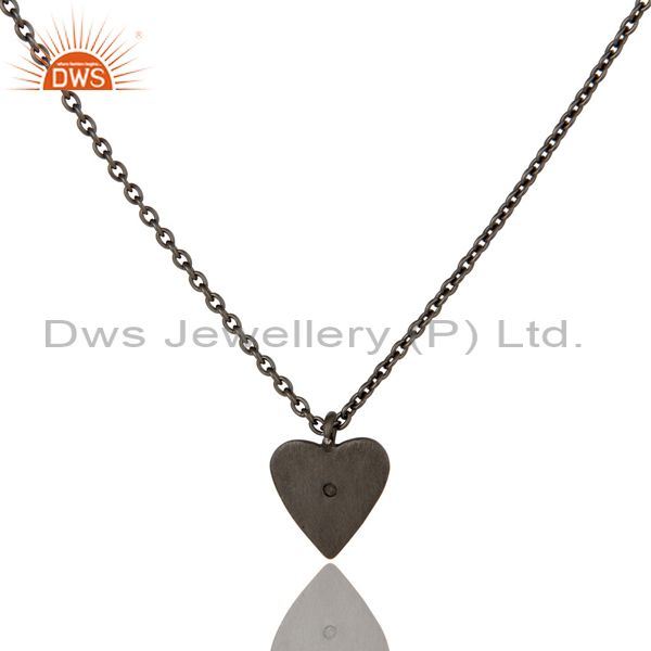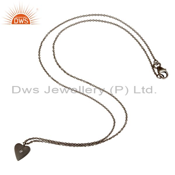 Black Oxidized 925 Sterling Silver Heart Design White Topaz Chain Pendant