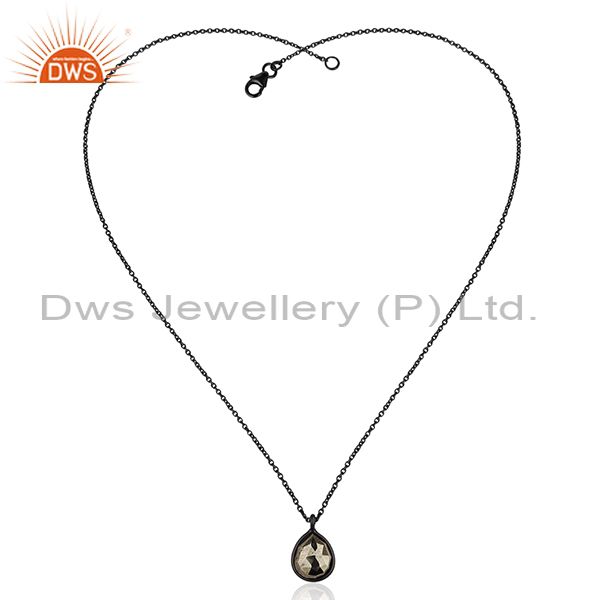 Black Oxidized 925 Sterling Silver Hematite Bezel Set Chain Pendant Jewelry