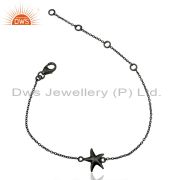 Black Oxidized 925 Sterling Silver Star Design Chain Pendant Necklace Jewelry