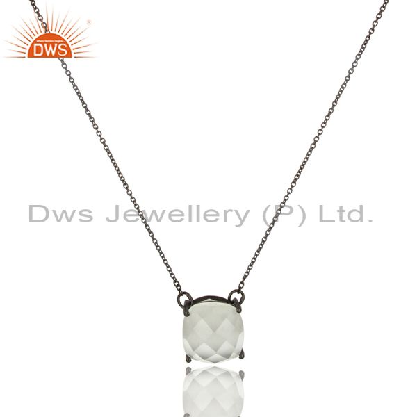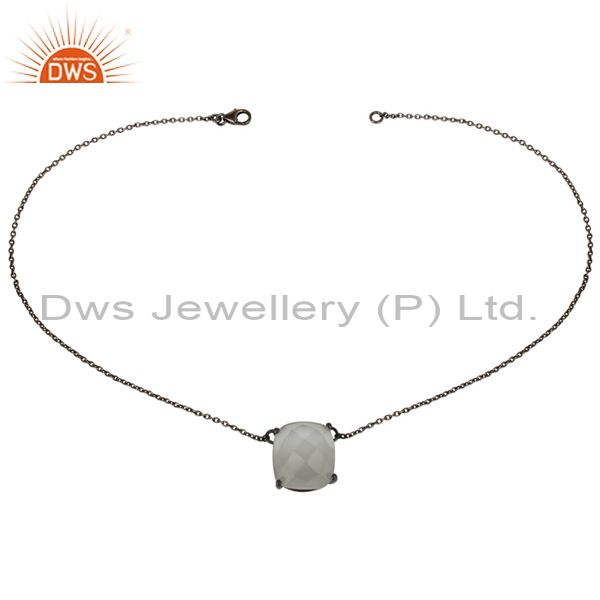 Black Oxidized 925 Sterling Silver White Moonstone Prong Set Chain Pendant