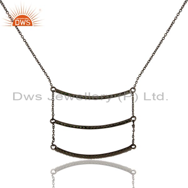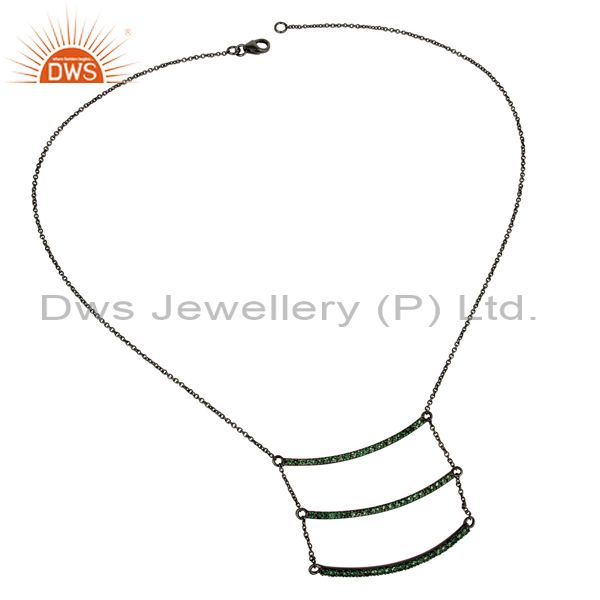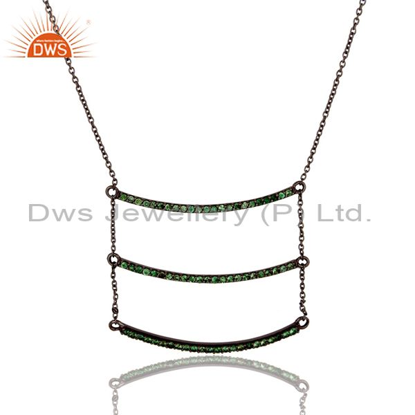 Black Oxidized Celebrity Style Sterling Silver Tsavourite Chain Pendant Necklace