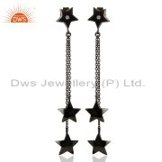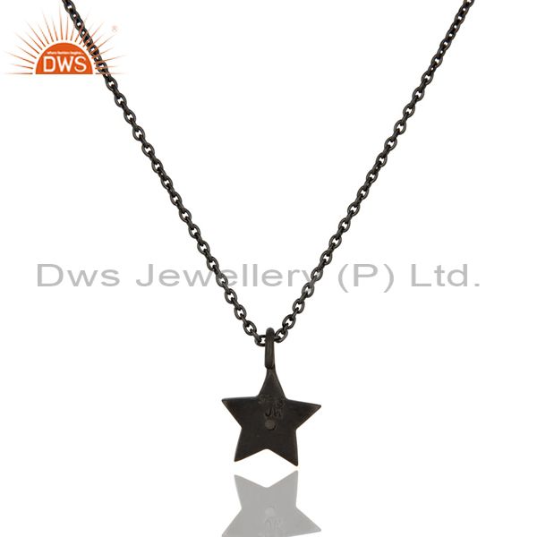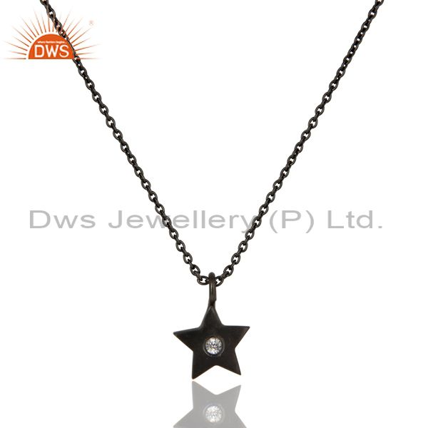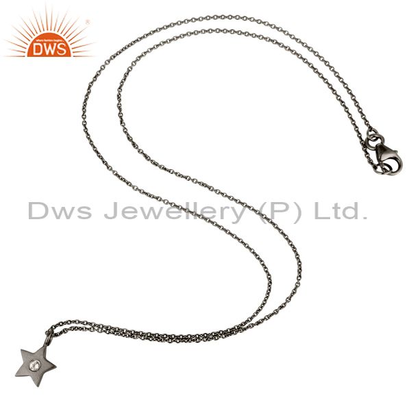 Black Oxidized Sterling Silver Star Design White Topaz Pendant with Chain