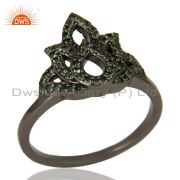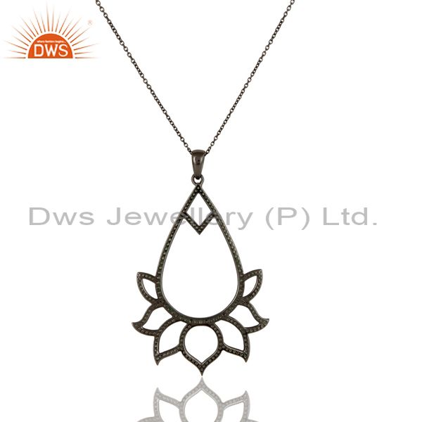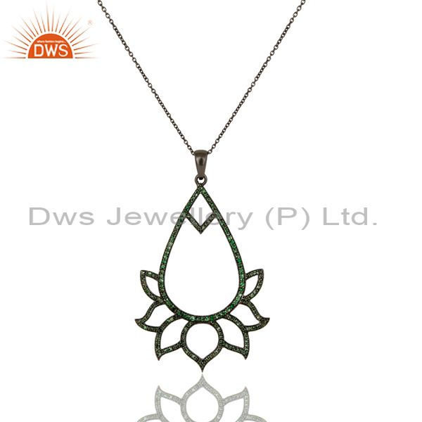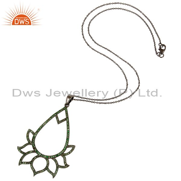 Black Oxidized Sterling Silver Tsavourite Lotus Style Chain Pendant Necklace