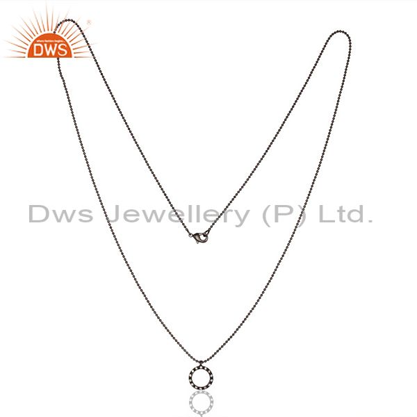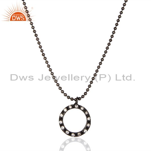 Black Oxidized White Zircon Round Style Chain Pendant Necklace