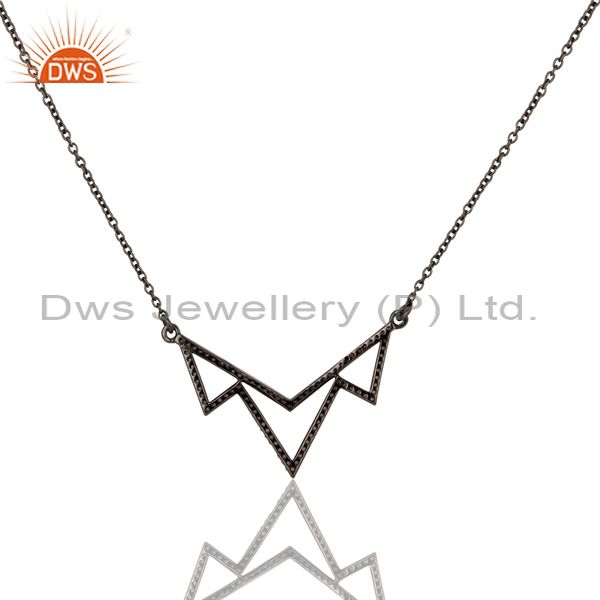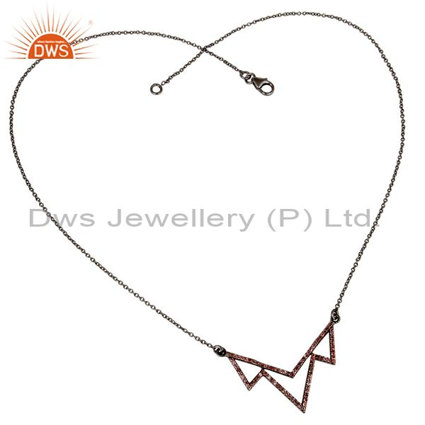 Black Oxidized with Pink Tourmaline Sterling Silver Crown Chain Pendant Necklace