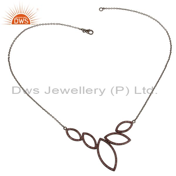 Black Oxidized with Pink Tourmaline Sterling Silver Pendant Necklace