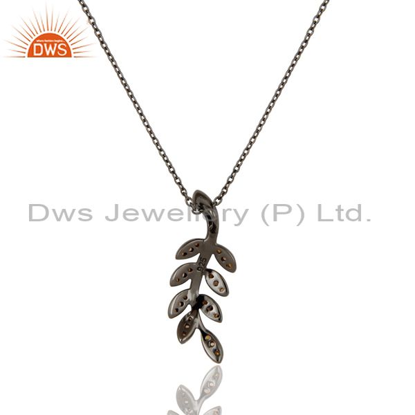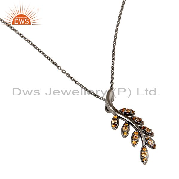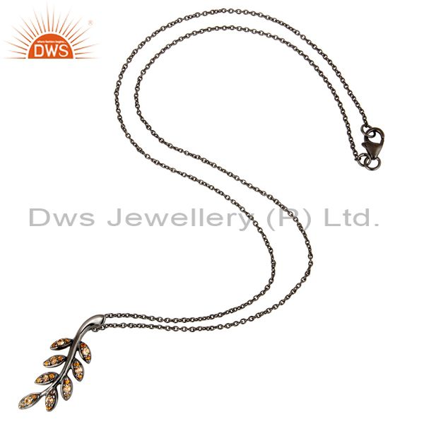 Black Oxidized With Spessartite Leaf Design Sterling Silver Pendant Necklace